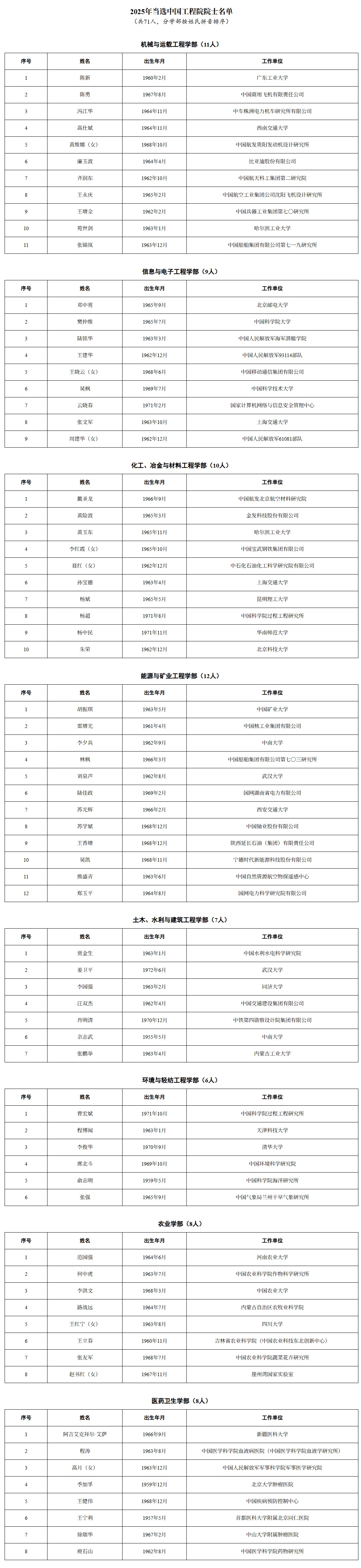 2025 年中国科学院、中国工程院院士增选结果揭晓,144 人当选