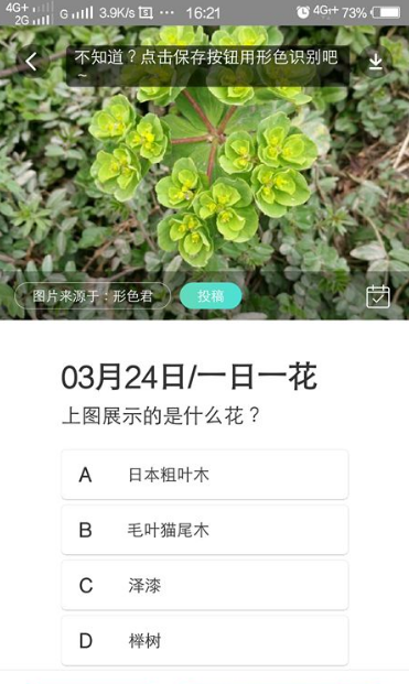 我们点击签字之后,进入到了签到界面,每日回答这个植物是什么植物。如下图所示。