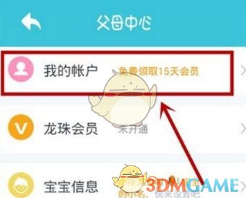 2、进入“父母中心”之后,点击“我的账户”