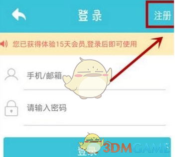 3、接下来我们进入了“登录”页面,老用户可以在这里直接输入账号和密码登录,新用户则需要点击右上角的“注册”按钮