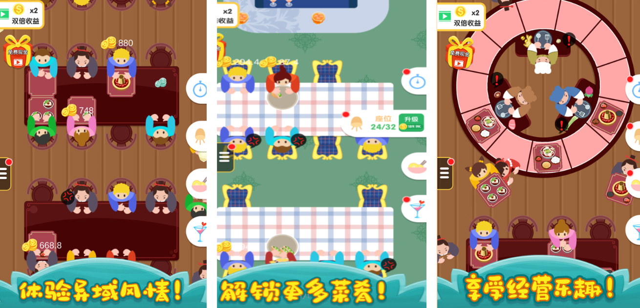 《烹饪王国》巧妙结合模拟经营与冒险探索两大元素,玩家需负责餐厅日常运作,包括食材采集、菜谱研发等环节。同时可派遣角色外出探险,寻找稀有原料,推动餐厅进阶发展,形成经营与探索相互促进的闭环体系。游戏内含角色成长系统与策略布局内容,为传统美食题材注入更多可玩性。随着剧情推进,王国背后的秘密也将逐步揭开。