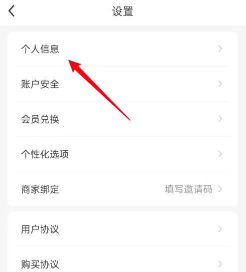 进入设置菜单栏,点击个人信息选项,点击进去。