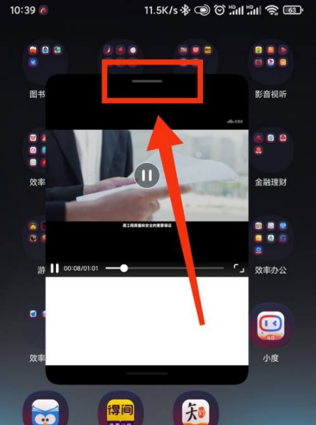拖动小窗口上方的横杠,拖到左/右上角,就可以悬浮窗播放。