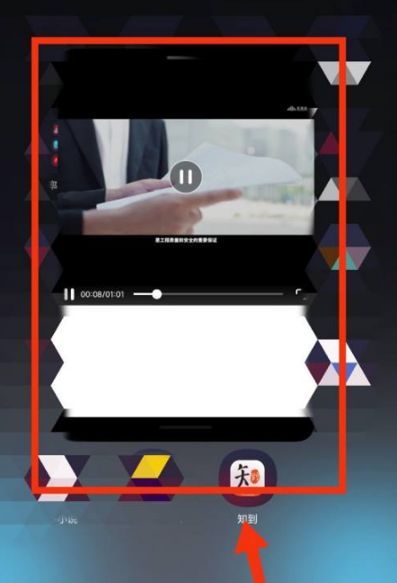 首先打开应用,播放需要看的视频,视频边缘的横杠上划长按进入后台处理中心。