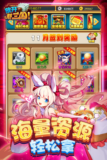 该作以诙谐剧情与精致古风美术著称,玩家可收集关羽、张飞及诸多谋士武将,依据各自特性定向强化属性与技能。活动任务与副本挑战是获取培养资源的主要途径。采用九宫格布阵系统,不同位置影响技能释放效果,每位武将具备专属必杀技与职业定位。支持大规模军团协作,跨服竞技场带来更激烈的PVP对抗体验。