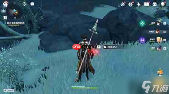 按照任务提示前行,你会遇到一块古老的坚冰,需要用深赤之石攻击四次才能将其击碎。