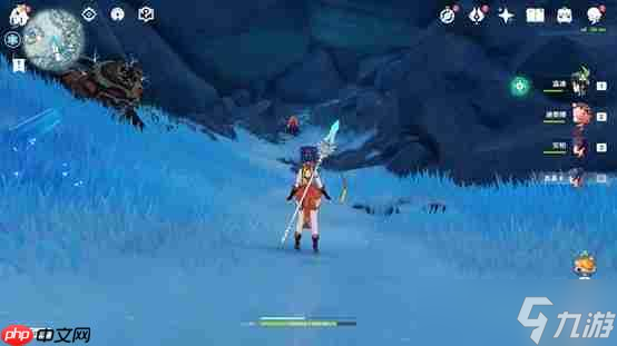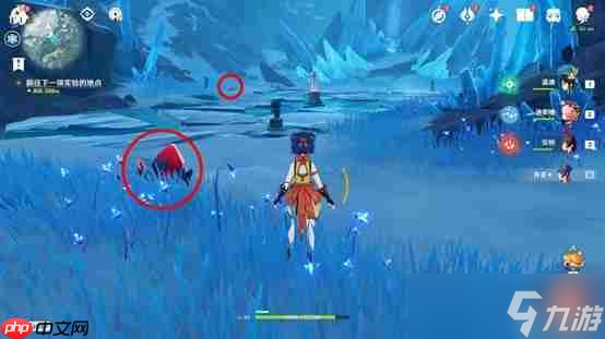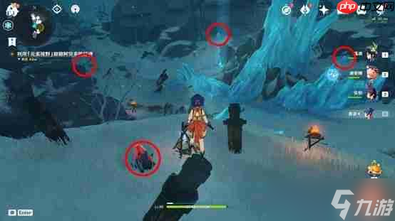 2、其中一个仙灵位于坚冰高处,另一个则隐藏在雪堆中(位置随机),使用火元素技能融化雪堆即可发现。