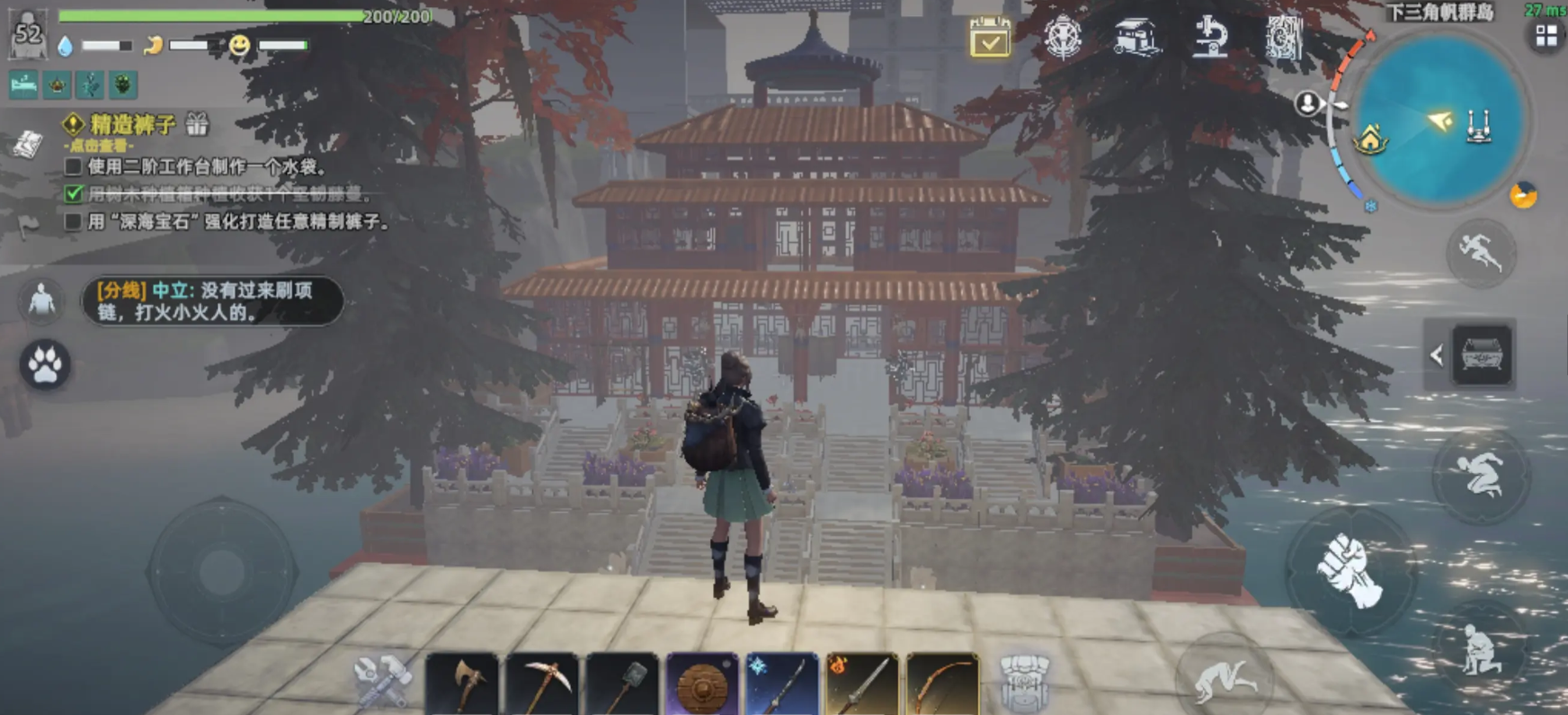 接下来就是准备工作,需要收集足够的材料,木材,石头,金属都是关键材料,优选高质量木材石头,木材是最基础的,消耗量也非常大,要准备充足,石头一般用来建造墙壁和地基,在矿山或者岩石区域可以采集,金属资源会稀缺一些,一般做建筑的关键部位,比如门窗的。