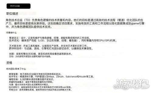根据职位描述,动画总监将负责角色、场景与物体的动画开发,制定游戏整体动画视觉方案并领导动画团队。另一位专家则将专注于角色建模、技术优化以及与美术团队的协调工作。招聘信息并未透露剧情或技术细节。