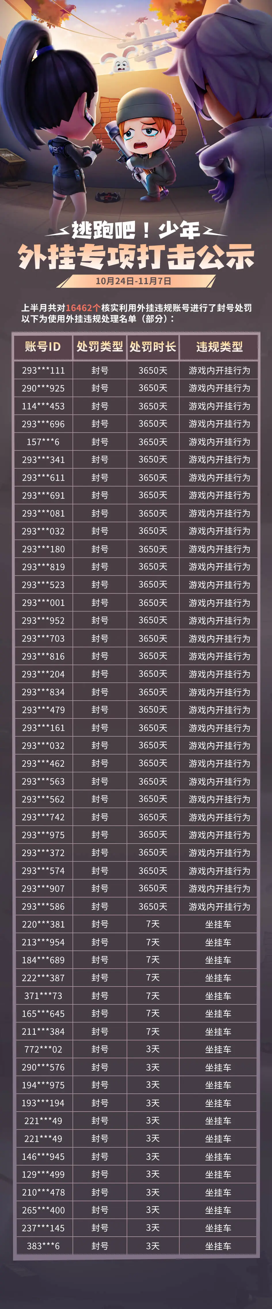 外挂处罚名单