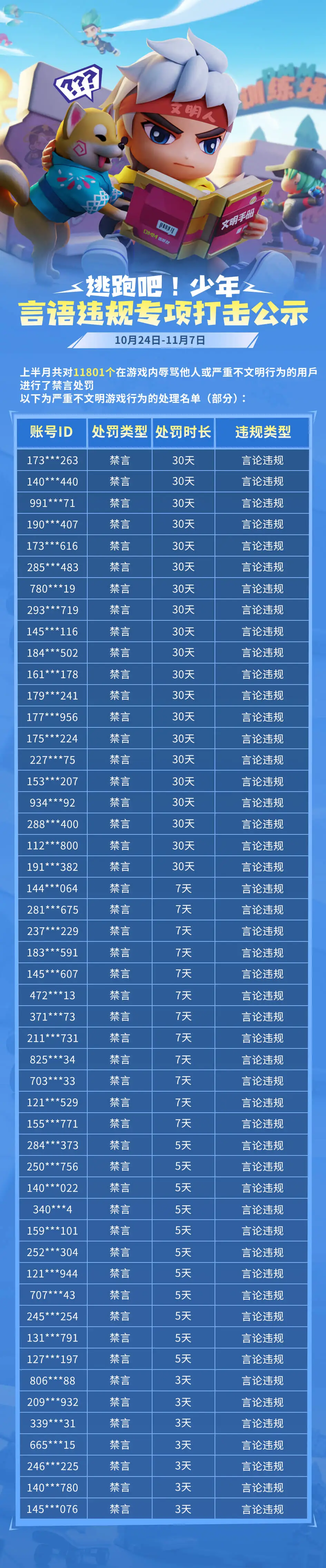 时间:2025-11-21 | 作者: | 阅读:0游戏安全处罚公示(10月24日——11月7日)