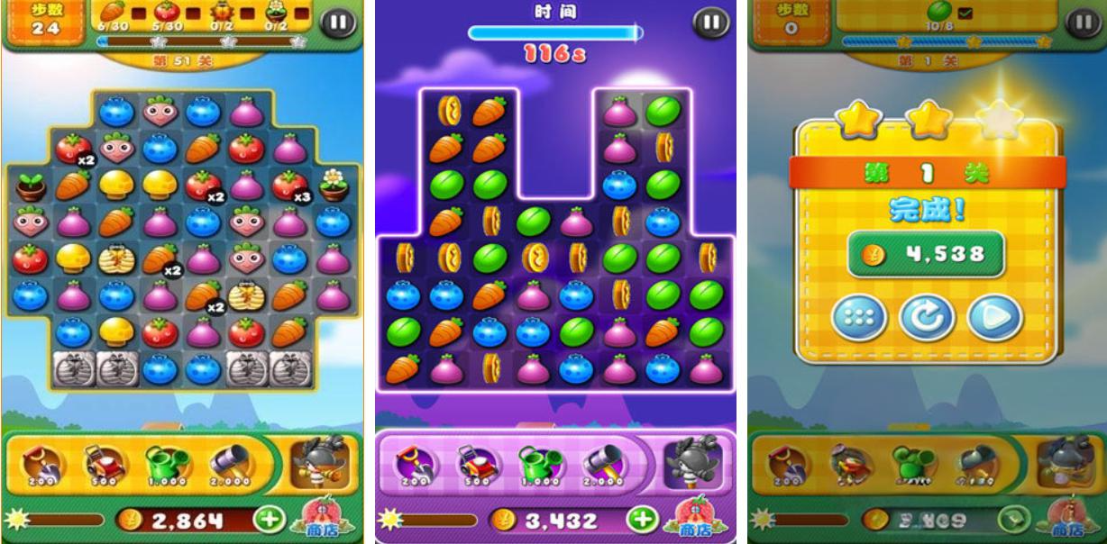 《蔬菜么么哒》是一款主打三消玩法的休闲益智游戏,整体画面采用了高饱和度的鲜艳色彩设计,营造出活力四射的游戏氛围。除了经典消除模式外,该游戏创新性地加入了剧情模式与加分挑战模式,使传统三消玩法更具层次感和可玩性。关卡设计巧妙,融合了众多造型可爱的蔬菜角色,让每一次通关都充满新鲜感。每次成功消除都会触发绚丽的视觉特效与清脆悦耳的音效反馈,极大提升了游戏的沉浸体验。