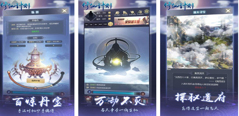 《修仙计划》是一款主打文字挂机与放置修真的国风水墨风格手游。其核心玩法围绕炼丹、修炼与探险展开,支持离线收益累积。玩家可通过炼制不同等级的丹药提升角色属性,并获得强力神兵应对高难度挑战。战斗系统讲究策略应对,密道探索与世界BOSS围剿机制进一步丰富了游戏内容,适合偏好轻松修真的玩家群体。