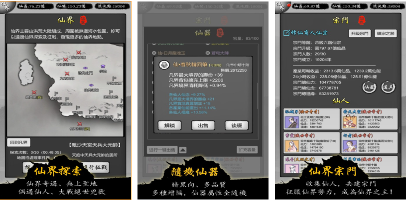 本作以黑白水墨美术风格著称,是一款独具特色的修真题材佳作。玩家可在仙界中自由探索,参与炼器、采药、斗法等多种活动。随机掉落的仙器与丹药大幅增强角色实力,开宗立派系统则带来高度自由的玩法选择。多样化的修真任务与互动机制极大提升了游戏可玩性,每一场战斗都充满未知与挑战。