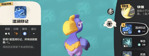 锤头鹳:会有刺耳的叫声,但是实力真的不容小看,比较适合于喜欢速攻节奏的玩家。特性是比较实用的,释放能耗小于三的技能石就可以得到迅捷的效果。技能组合,主打的就是能耗优化,还有高频输出,啄击技能在释放之后可以完成两次连击,会稳定的打出物理性的伤害。湿润印记,还可以获得一层印记,并且还可以让所有的招式减少一个能耗,进一步的降低助攻的压力。气泡则可以打出水属性的伤害,在补充伤害这方面是比较灵活的。