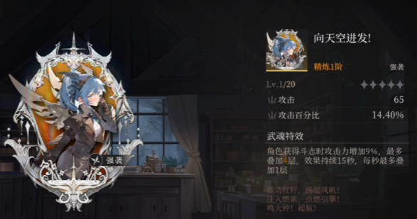 在辉烬里北洛作为近战格斗型角色,武器选择直接影响他的战斗节奏和输出效率,尤其是专属武器和替代方案的差异,会在不同战斗场景中体现出明显区别,先说说他的专属武器向天空出发,这把武器最核心的价值,不是简单加属性而是跟北洛的斗志机制完全绑在一起,从资源积累到操作容错,再到输出上限,都能形成一套完整的战斗逻辑,北洛打输出全靠斗志资源,得靠普攻、技能命中或者连招衔接慢慢攒,而且这资源不会自己掉,能存着等关键时候用。