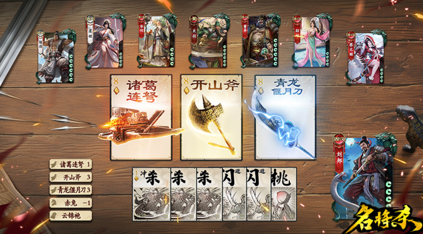 和云锦袍的防御强化不同,开山斧属于土属性装备中攻击力很强的一种。它的技能描述是:出杀,你可以弃置一张牌,使此杀的伤害加一。此效果使玩家在使用【杀】的时候可以主动消耗资源来换取更大的爆发力。伤害加成可以叠加,如果玩家连续使用弃牌动作,就能打出巨大的伤害。结算部分说明,如果【杀】的目标超过一个,那么每个目标的伤害都会增加一,所以在群战中特别有效。
