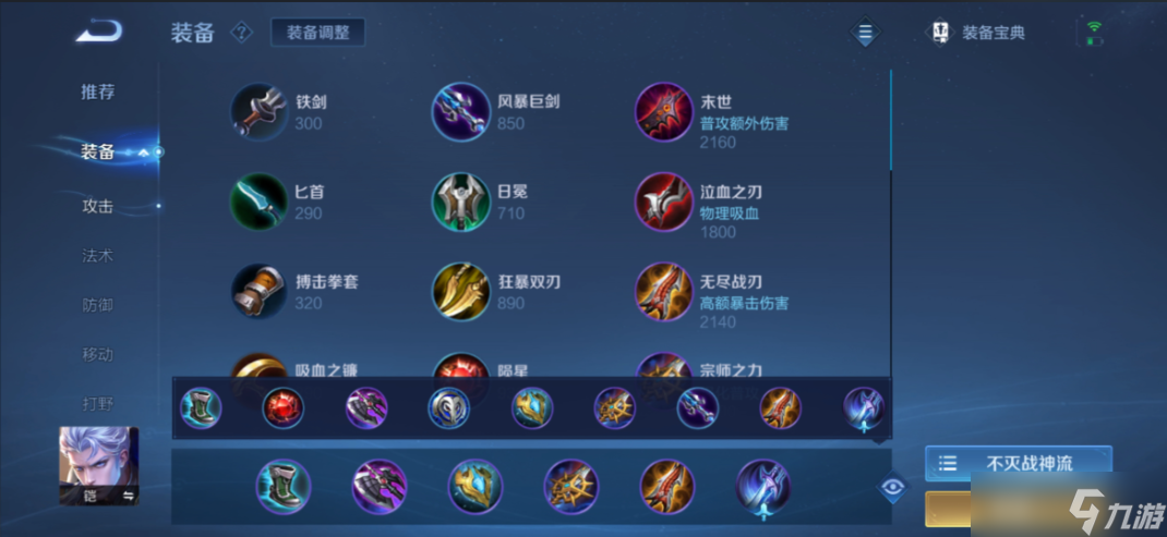 半肉抗压流出装顺序为抵抗之靴、暗影战斧、极寒风暴、宗师之力、不死鸟之眼、无尽战刃。这套装备使铠在中期具备较强坦度,极寒风暴提供物理防御和冷却缩减,配合不死鸟之眼的法术抗性,能有效应对混合伤害阵容。宗师之力强化技能后的普攻伤害,与铠的二技能机制高度契合。后期可将防御装替换为名刀司命或贤者的庇护提升容错率,面对控制较多的对局时可优先做出魔女斗篷。