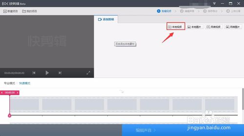 打开快剪辑工具,并点击本地视频按钮。在弹框中选择要处理的视频文件并点击打开。如下图所示