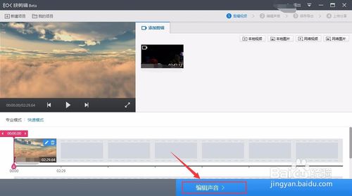处理视频,截取想要的视频片段。完成后点击编辑声音按钮,如下图所示