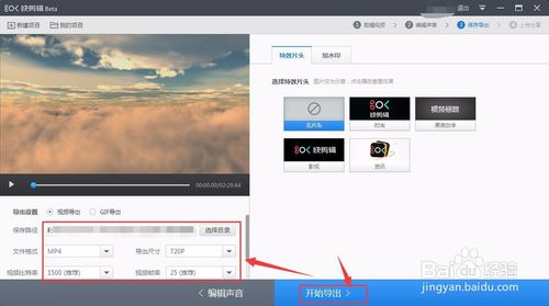 设置视频导出属性,设置完成后点击“开始导出”按钮。如下图所示