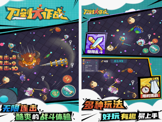 这是一款专注于刀剑对战的动作游戏,提供限时挑战与极限乱斗两种核心模式。玩家将在开放战场中操控角色,使用手中的利刃与其他对手展开激烈厮杀。每把刀剑都拥有独特的外观设计,配合灵活的操作、精准的走位和快速的手速,可实现流畅连击,带来酣畅淋漓的战斗体验。通过不断击败敌人积累荣耀,成为真正的刀剑之王。