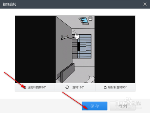 然后根据实际情况,点击下方旋转角度,这里选择【逆时针旋转90度】,然后点击【保存】按钮。