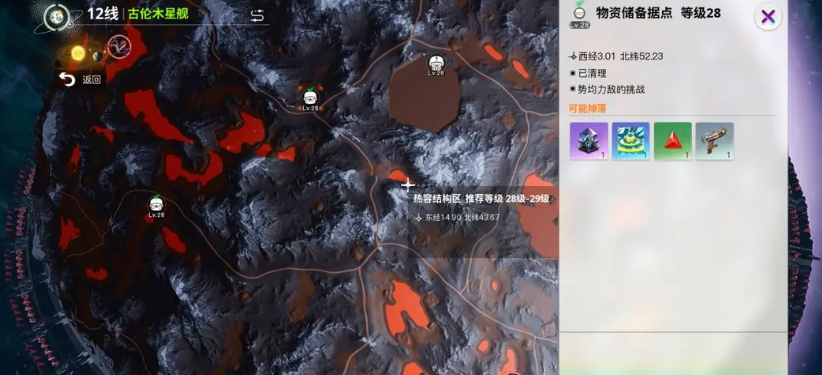地图上醒目的猪头图标标记着古龙木营地这一重要地点,这里是日常挑战关卡,每个角色每天有多次开启营地宝箱的机会,上限6次,内含丰富的武器装备和其他奖励。成功通关该关卡,不仅可以获得宝贵的充能武器,还能搜集到用于升级装备的材料,且每日限量刷新的机甲BOSS等待着勇敢者的挑战,击败机甲BOSS后,可开启专属宝箱,获取稀有机械零件和顶级装备。