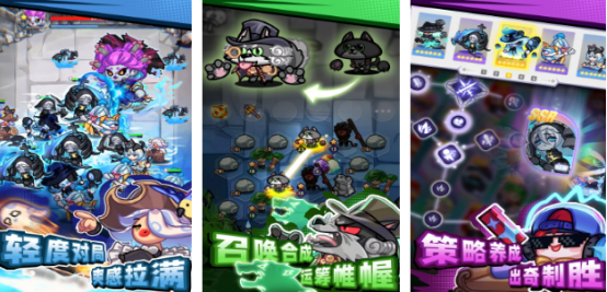 该游戏融合自走棋与策略对抗机制,玩家通过合并相同单位提升战斗力,增强生命值与攻击力。增益效果可叠加,使角色输出持续增长。采用高饱和度Q版卡通画风,角色设计萌趣十足,辨识度极高。每局对战时长约3至5分钟,节奏紧凑,非常适合利用碎片时间进行娱乐放松。
