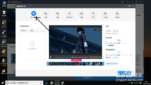 5.然后打开编辑视频片段对话框,在这选择基础选项卡。