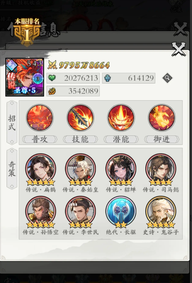 确定发展方向后,阵容搭配成为核心环节。若选择高投入路线,推荐采用爆发输出+强力辅助组合。伏羲在此体系中表现突出,兼具回血、增怒与伤害反弹功能;李世民担任主C位,拥有极高输出潜力;炎帝则可在单挑场景中显著提升胜率。该阵容强度顶尖,常被资深玩家称为“大佬标配”。