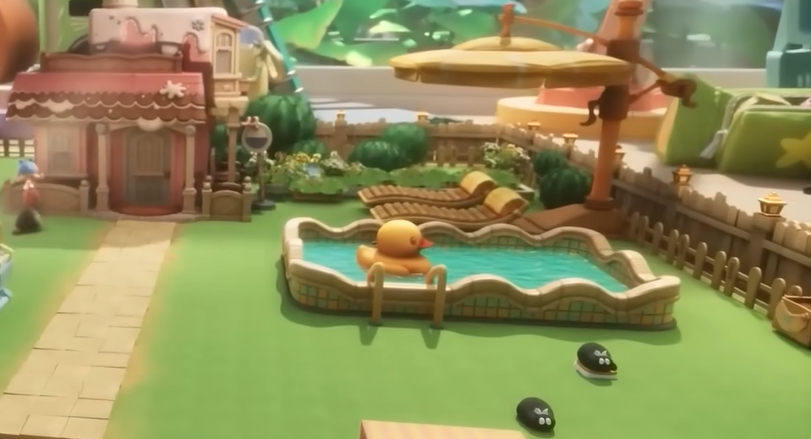 发挥创造力,建造属于你的泳池区域,并注入清澈水流,邀请同伴一同畅游。户外区域设有由毛线团构成的独特绿植,点缀广阔的绿色草坪,营造出梦幻般的景观效果。当情绪低落时,可通过副本中的涂鸦玩法释放压力,多种任务形式交替出现,保持游戏体验的新鲜感。