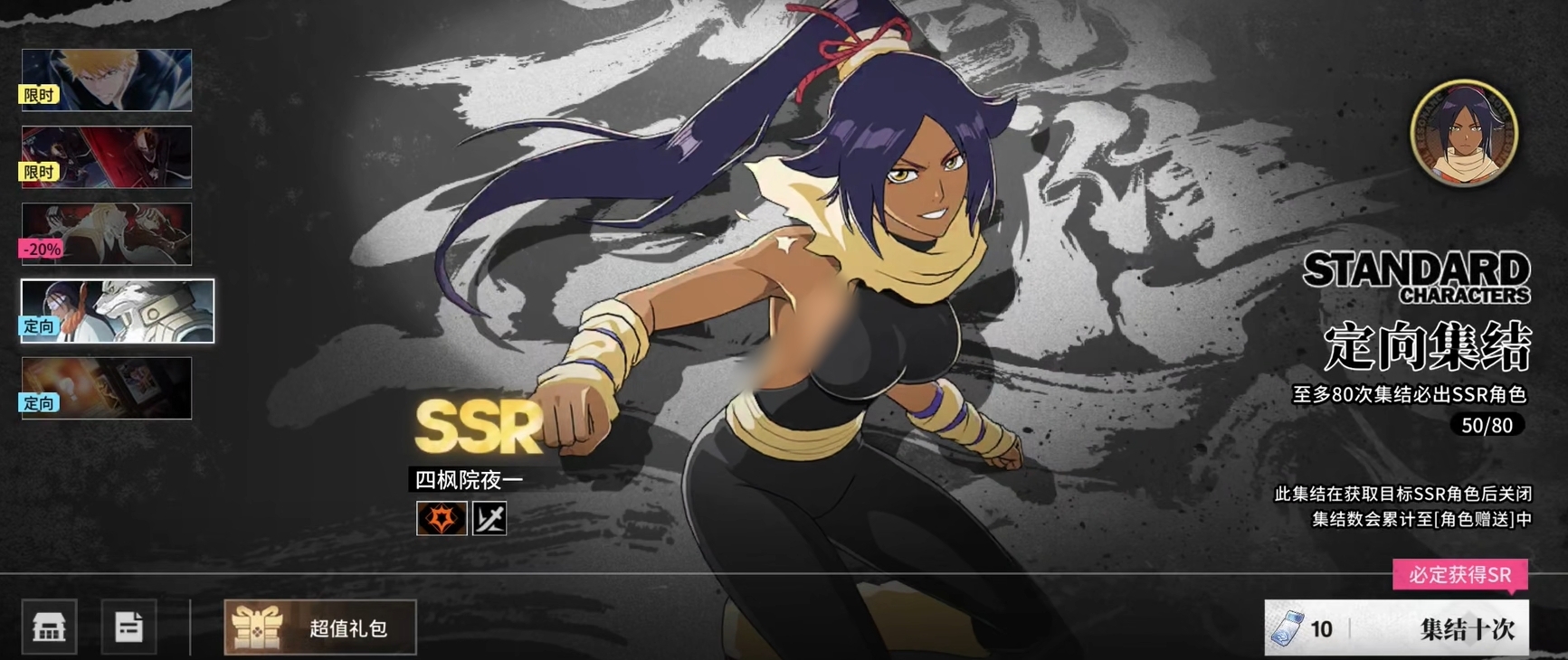新增的定向卡池是本次更新的另一大亮点。该卡池独立于常驻池运行,抽取记录不互通,允许玩家从常驻池SSR中自主选择一名目标角色进行定向抽取。在累计抽取不超过80次的情况下,必定获得所选角色。需要注意的是,定向池为一次性使用机制——一旦成功获取选定角色,该卡池即关闭,不可重复开启。因此建议玩家优先在常驻池完成初始抽取(尤其是折扣抽卡阶段),待获得首个SSR后再进入定向池锁定缺失的关键角色,从而高效组建主力阵容。