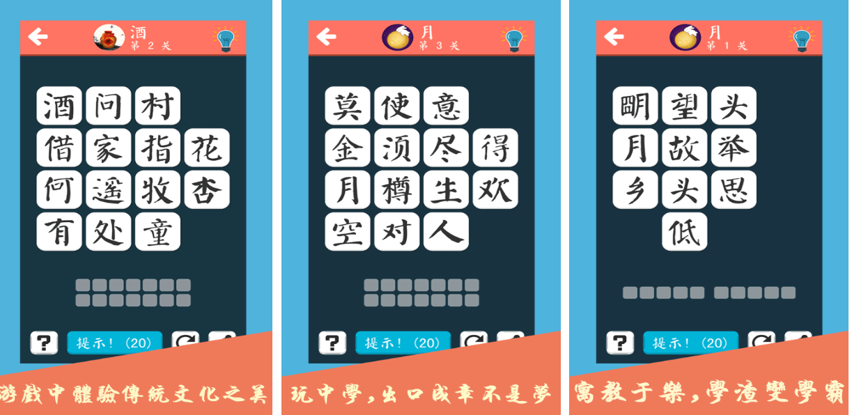热爱古诗词的孩子不容错过这款硬核文化手游。游戏围绕“飞花令”形式展开,涵盖多个朝代的经典诗句,玩家需根据提示补全诗词内容。不仅考验诗词储备,还能深入了解诗人创作背景与情感表达。通过互动答题方式,潜移默化地提升文学鉴赏力,是小学语文课堂之外的优质延伸资源。