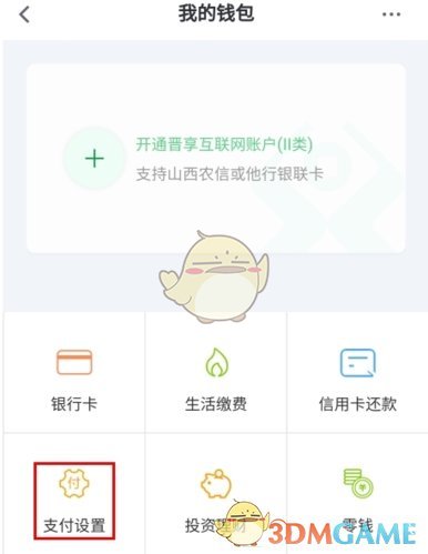 1、在我的钱包页面中点击支付设置按钮;