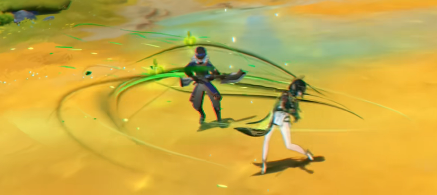 奈芙尔的普通攻击名为“游蚰吐信”,可进行四段连续踢击,每次命中均造成草元素伤害。特别的是,该技能允许她进入“蛇行状态”,在此状态下消耗体力实现最长2.5秒的高速移动。退出该状态的方式包括松开技能键、时间耗尽或体力不足,此时将额外释放一次草伤攻击。值得注意的是,在蛇行过程中使用元素战技或冲刺不会打断当前状态,极大增强了角色的机动性和战斗中的走位灵活性。