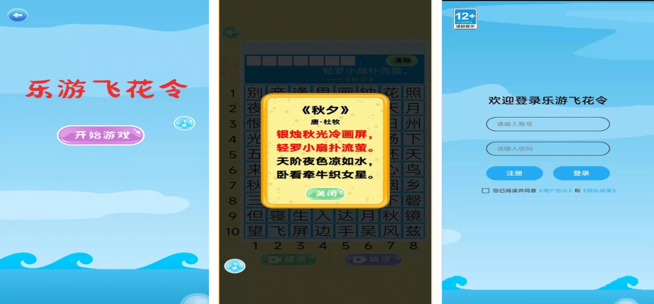 《乐游飞花令》主打轻松休闲的传统文化体验,将诗词答题与趣味小游戏相结合。每一关设置不同任务类型,如诗句填空、字谜破解、成语串联等,玩法多变且富有趣味性。玩家通过完成挑战积累积分,兑换装饰物品或功能道具,用于个性化界面或增强下一轮优势。游戏节奏明快,适合碎片时间游玩,在娱乐中潜移默化地巩固语文知识。