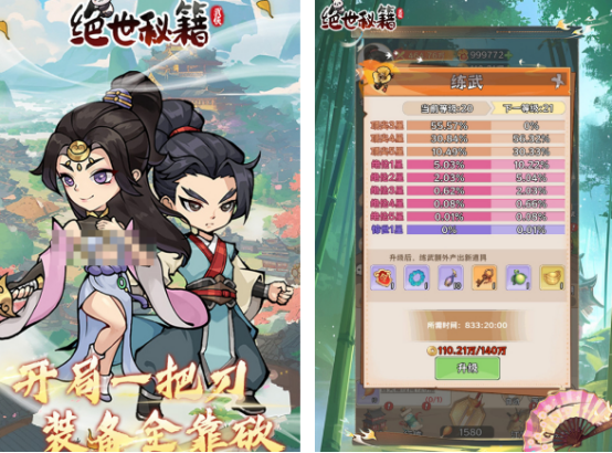 采用浓郁国风美术风格,讲述一位初入江湖的新手如何通过历练成长为一代宗师的故事。虽起步弱小,但可通过冒险击败对手逐步提升实力。卡通化的人物设计搭配轻松挂机养成系统,让玩家在闲暇之余也能持续进步。研习各种绝世秘籍,合理运用操作技巧,尽显武侠风采。
