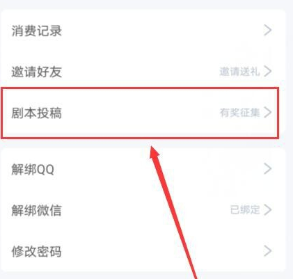 之后打开设置界面,在界面中找到并且点击剧本投稿选项卡。