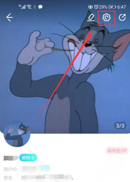 打开个人设置界面之后点击右上角的齿轮设置按钮。