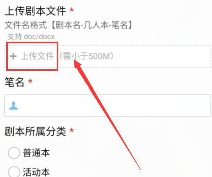 之后会打开投稿表单,在上传剧本文件一栏中上传写好的剧本。