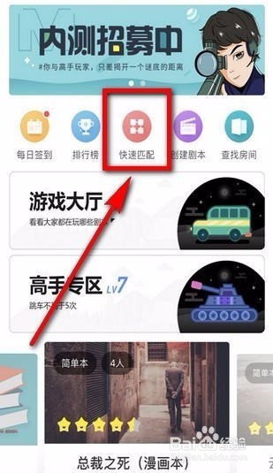 首先我们要在应用商店或者百度下载并打开“我是谜”,然后如何点击“快速匹配”。