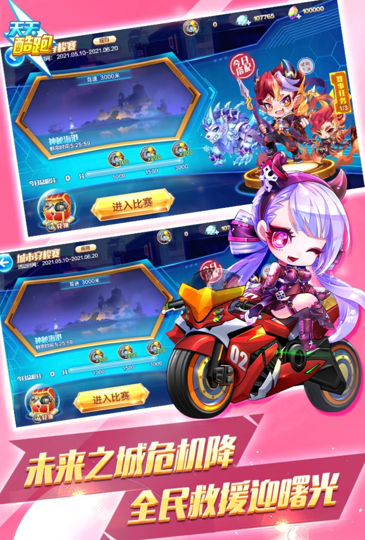 《天天酷跑》是一款节奏明快的跑酷类手游,拥有大量炫酷的坐骑和萌态十足的宠物系统。玩家将在不同主题赛道中与其他对手展开竞速挑战,通过灵活操作躲避障碍并收集金币。游戏设有排行榜机制,可实时查看排名变化。每次挑战需消耗爱心值,也可与好友互赠恢复资源。角色配备多种宝物,合理搭配能显著提升属性表现。每天都有新的目标开放,带来持续不断的闯关新鲜感。