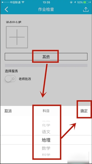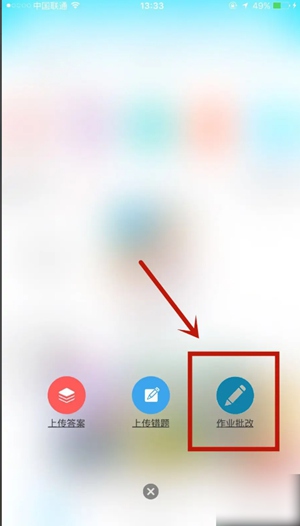 2.点击作业批改,点击小框,选上科目后再点击确定。