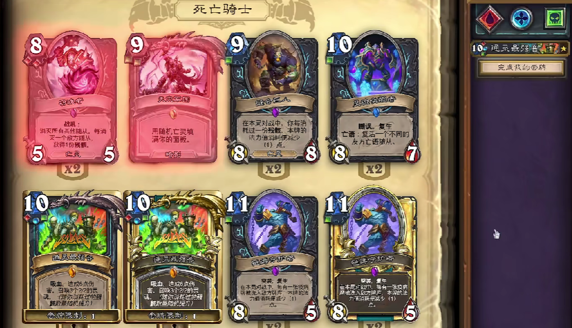 死亡骑士的推荐卡组为控制卡组和瘟疫卡组。