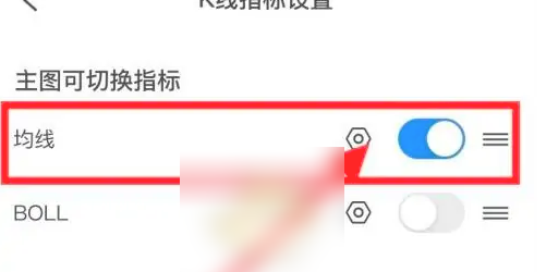4、最后,找到【均线】右侧的滑块并关闭【BOLL】即可。