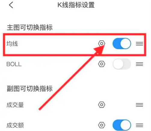 最后,选择找到【均线】右侧的滑块并关闭【BOLL】即可。
