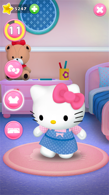 该游戏提供了高度互动的体验方式,玩家不仅能与凯蒂猫对话交流,还能为其更换服装、喂食甜点。无论是享用甜甜圈还是品尝发光冰淇淋,角色反应生动逼真。此外,内置三消与跑酷小游戏,增加娱乐多样性,所有内容均可免费畅玩。