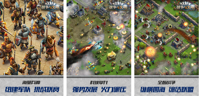 《战争与文明》融合了帝国发展与即时战争的双重乐趣,是一款横跨多个历史时期的大型策略手游。采用欧美写实风格画面,玩家将扮演一方领主,从青铜时代起步,逐步推进至现代科技阶段。招兵买马、训练部队、扩张领土成为日常操作,而清晰的新手引导让新人玩家也能迅速掌握游戏节奏。无论是发展经济还是组织进攻,都需要缜密的长期规划,适合追求深度策略体验的用户。