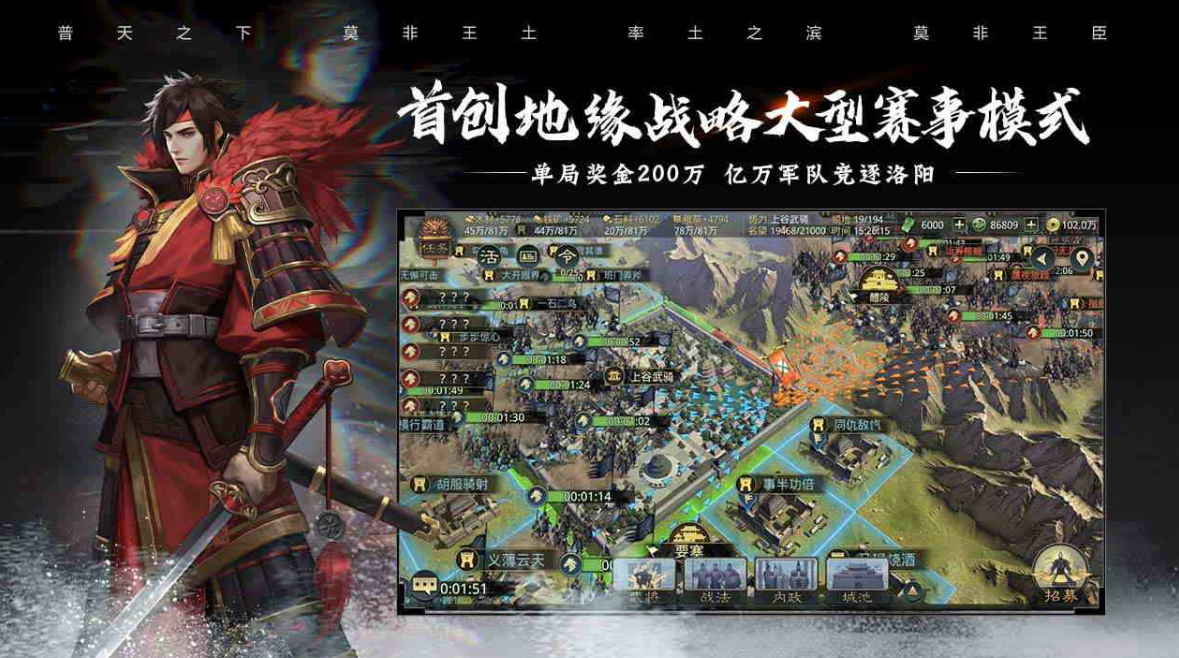 该游戏构建了一个由225万个格子组成的超大沙盘世界,以三国乱世为舞台,赋予玩家极高的自主权。每位玩家均可担任主公角色,招募将领、组建军队、争夺地盘,所有战斗行为均由玩家主动触发,无强制剧情干扰。创新的万人同服机制打破了传统赛季限制,即使是新玩家也能通过开荒活动获得可观奖励。队伍配置灵活多变,没有固定模板,策略多样性成为取胜的核心要素。
